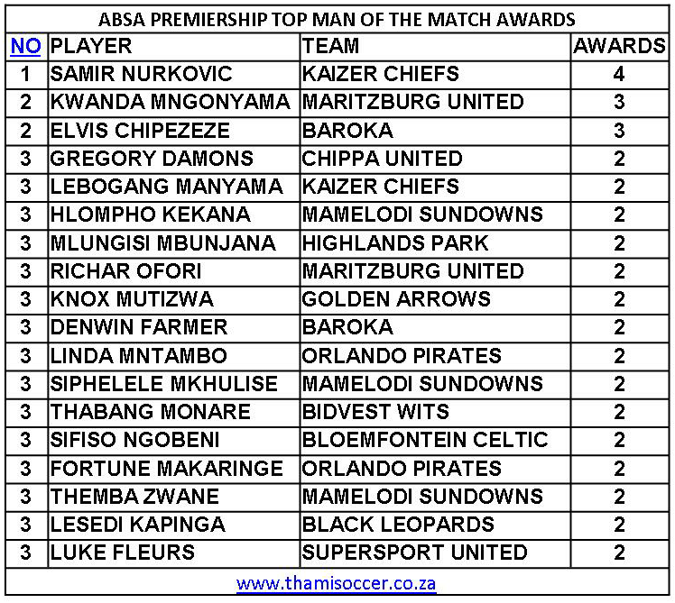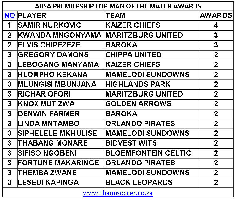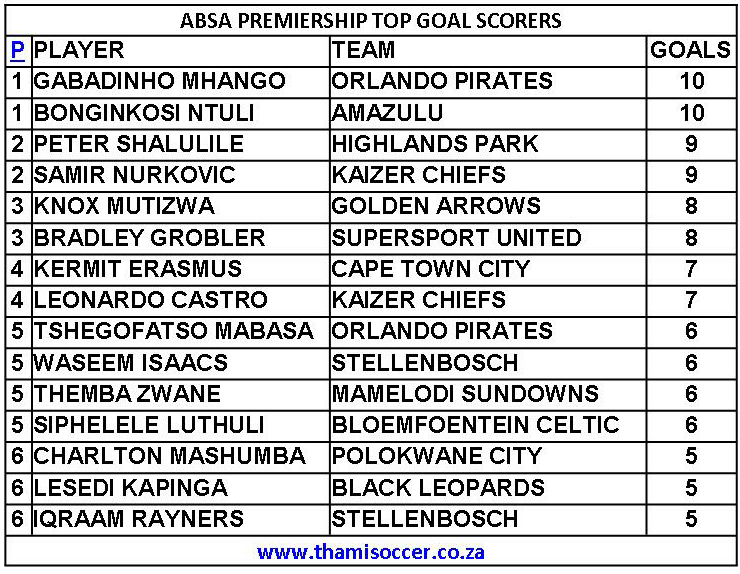 ABSA Premiership Top Goal Scorers 12 January 2020