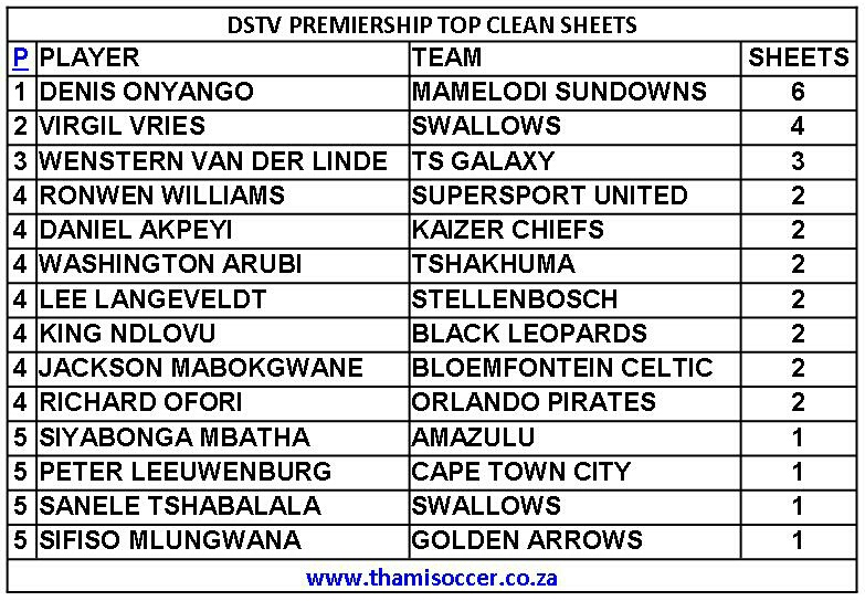 GladAfrica Championship Top Clean Sheets 2 January 2021