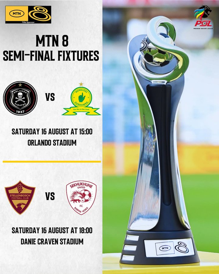 2025 MTN8 Semi-Finals First Legs fixtures, dates, venues and kick-off times have been confirmed by the Premier Soccer League.