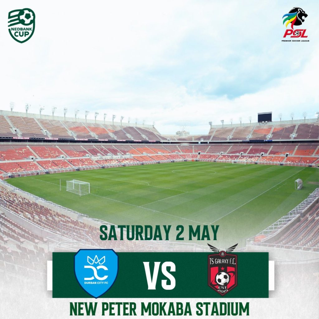 Peter Mokaba Stadium will host the 2026 Nedbank Cup Final between Durban City FC and TS Galaxy on 2 May 2026.