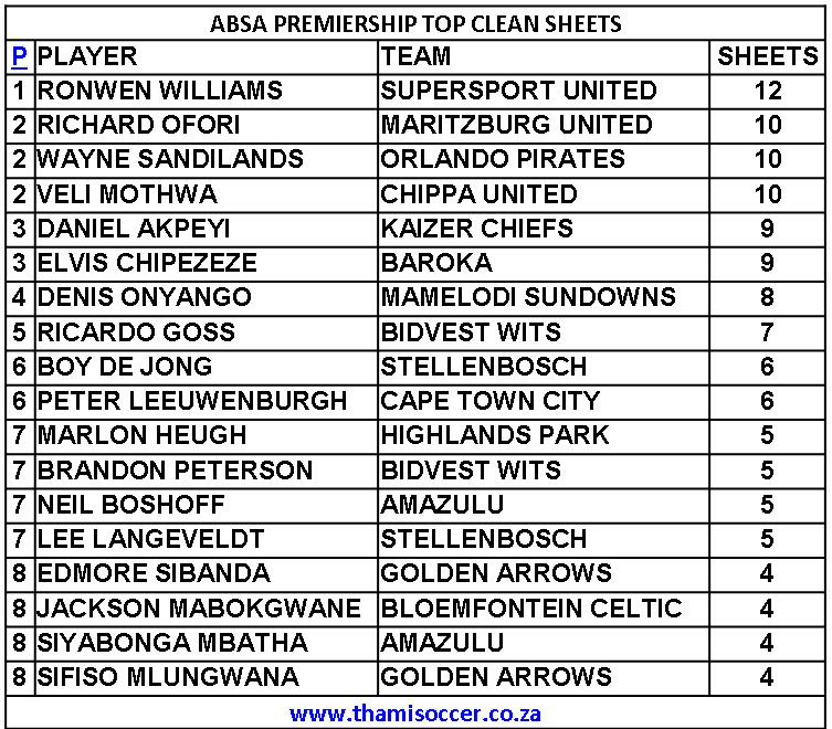 ABSA Premiership Top Clean Sheets 22 August 2020 Posted on 2020-08-232020-08-23 By Thami Mshengu No Comments on ABSA Premiership Top Clean Sheets 22 August 2020 (Visited 24 times, 1 visits today)Share this:TwitterWhatsAppPrintTumblrLinkedInFacebookTelegramRedditPocket Related Betway Premiership