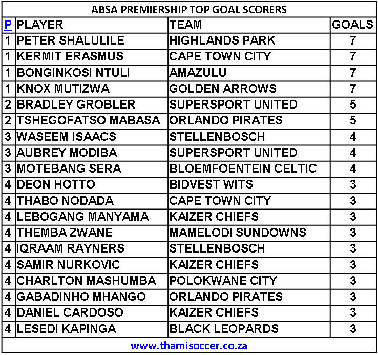 ABSA Premiership Top Goal Scorers 10 November 2019 Posted on 2019-11-112019-11-11 By Thami Mshengu No Comments on ABSA Premiership Top Goal Scorers 10 November 2019 (Visited 17 times, 1 visits today)Share this:TwitterWhatsAppPrintTumblrLinkedInFacebookTelegramRedditPocket Related Betway Premiership