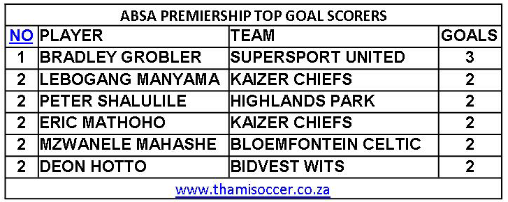 ABSA Premiership Top Goal Scorers 24 August 2019 Posted on 2019-08-24 By Thami Mshengu No Comments on ABSA Premiership Top Goal Scorers 24 August 2019 (Visited 20 times, 1 visits today)Share this:TwitterWhatsAppPrintTumblrLinkedInFacebookTelegramRedditPocket Related Betway Premiership