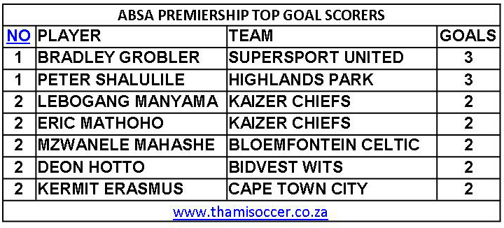 ABSA Premiership Top Goal Scorers 27 August 2019 Posted on 2019-08-27 By Thami Mshengu No Comments on ABSA Premiership Top Goal Scorers 27 August 2019 (Visited 172 times, 1 visits today)Share this:TwitterWhatsAppPrintTumblrLinkedInFacebookTelegramRedditPocket Related Betway Premiership