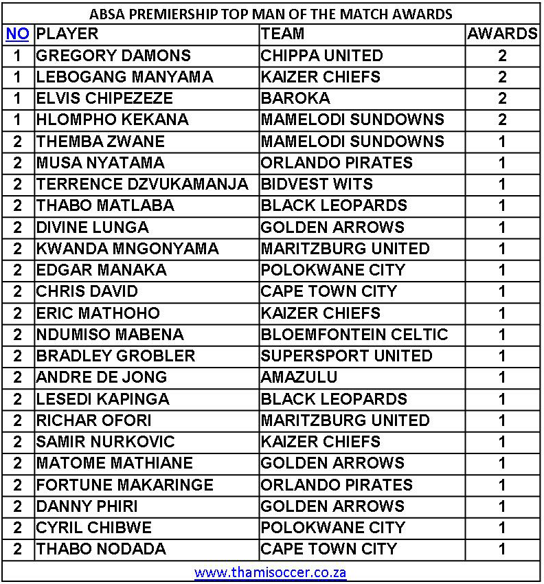 ABSA Premiership Top Man Of The Match Awards 14 September 2019 Posted on 2019-09-15 By Thami Mshengu No Comments on ABSA Premiership Top Man Of The Match Awards 14 September 2019 (Visited 23 times, 1 visits today)Share this:TwitterWhatsAppPrintTumblrLinkedInFacebookTelegramRedditPocket Related Betway Premiership