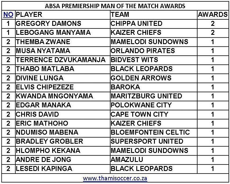 ABSA Premiership Top Man Of The Match Awards 24 August 2019 Posted on 2019-08-25 By Thami Mshengu No Comments on ABSA Premiership Top Man Of The Match Awards 24 August 2019 (Visited 38 times, 1 visits today)Share this:TwitterWhatsAppPrintTumblrLinkedInFacebookTelegramRedditPocket Related Betway Premiership