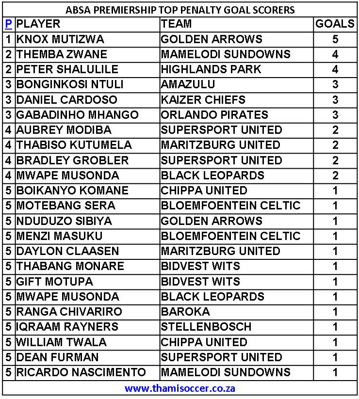 ABSA Premiership Top Penalty Goal Scorers 21 August 2020 Posted on 2020-08-222020-08-22 By Thami Mshengu No Comments on ABSA Premiership Top Penalty Goal Scorers 21 August 2020 (Visited 31 times, 1 visits today)Share this:TwitterWhatsAppPrintTumblrLinkedInFacebookTelegramRedditPocket Related Betway Premiership