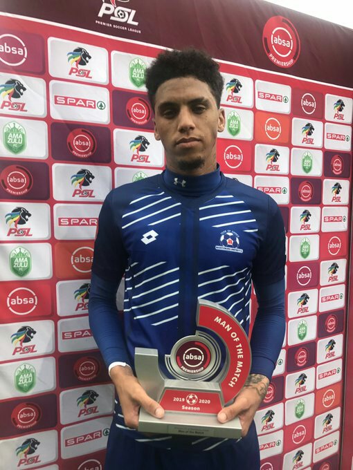 Rushine De Reuck of Maritzburg United was voted as the ABSA Premiership man of the match against AmaZulu at King Zwelithini Stadium