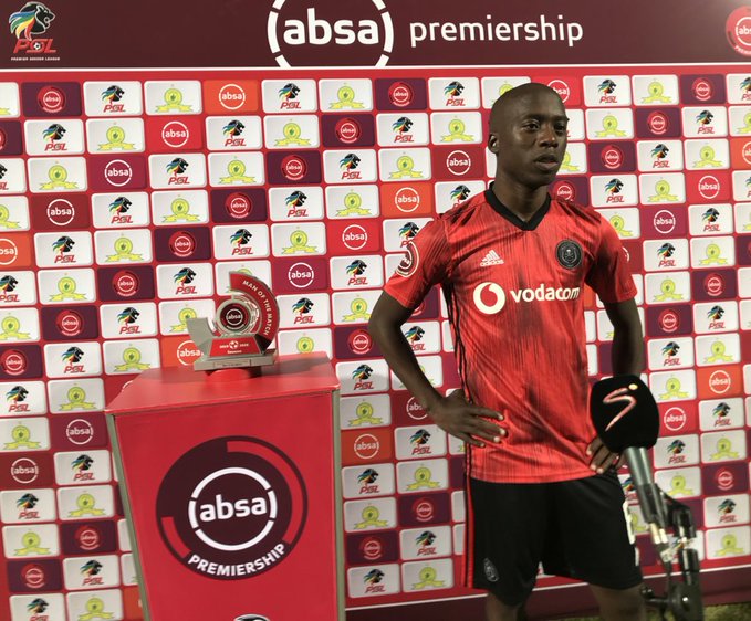 Ben Motshwari of Orlando Pirates was voted as the ABSA Premiership man of the match against Mamelodi Sundowns at Dobsonville Stadium