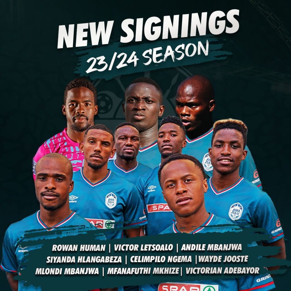 AmaZulu FC signed 9 new players Posted on 2023-08-042025-08-10 By Thami Mshengu No Comments on AmaZulu FC signed 9 new players AmaZulu FC signed Rowan Human, Victor Letsoalo, Andile Mbanjwa, Siyanda Hlangabeza, Celimpilo Ngema, Wayde Jooste, Mlondi Mbanjwa, Mfanafuthi Mkhize and Victorien Abedayo. (Visited 30 times, 2 visits today)Share this:TwitterWhatsAppPrintTumblrLinkedInFacebookTelegramRedditPocket Related Betway Premiership Tags:Andile Mbanjwa, Celimpilo Ngema, Mfanafuthi Mkhize, Mlondi Mbanjwa, Rowan Human, Siyanda Hlangabeza, Victor Letsoalo, Victorien Abedayor, Wayde Jooste