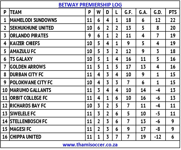 Betway Premiership Log 2 November 2025 Posted on 2025-11-022025-11-06 By Thami Mshengu No Comments on Betway Premiership Log 2 November 2025 (Visited 7 times, 1 visits today)Share this:TwitterWhatsAppPrintTumblrLinkedInFacebookTelegramRedditPocket Related Betway Premiership Tags:Mamelodi Sundowns