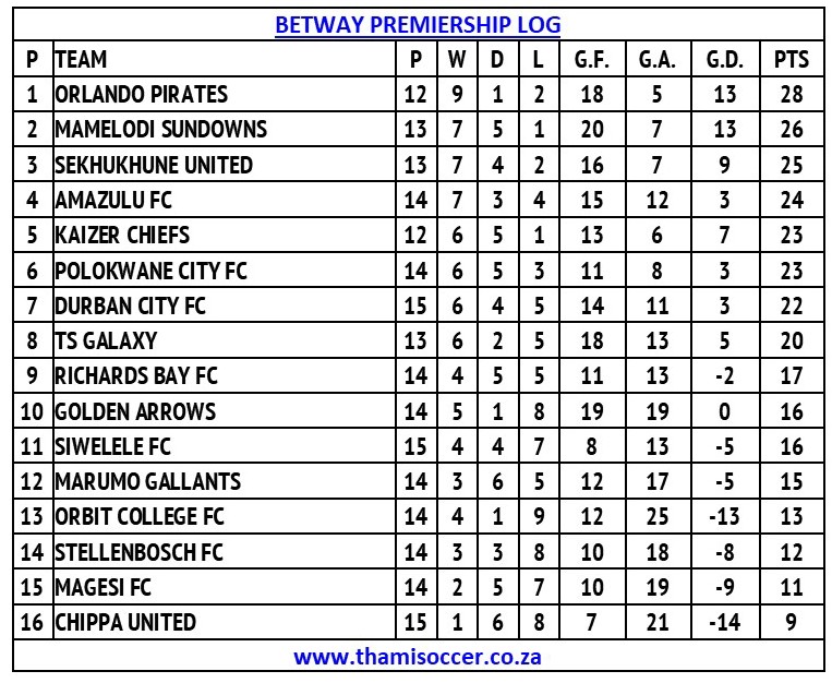 Betway Premiership Log 3 December 2025 Posted on 2025-12-032025-12-04 By Thami Mshengu No Comments on Betway Premiership Log 3 December 2025 (Visited 19 times, 1 visits today)Share this:TwitterWhatsAppPrintTumblrLinkedInFacebookTelegramRedditPocket Related Betway Premiership Tags:Orlando Pirates