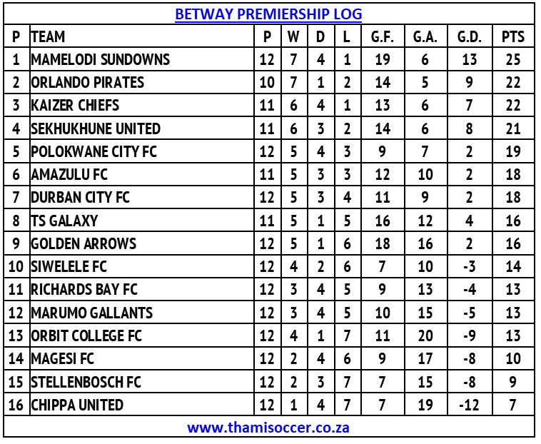 Betway Premiership Log 5 November 2025 Posted on 2025-11-052025-11-25 By Thami Mshengu No Comments on Betway Premiership Log 5 November 2025 (Visited 40 times, 1 visits today)Share this:TwitterWhatsAppPrintTumblrLinkedInFacebookTelegramRedditPocket Related Betway Premiership Tags:Mamelodi Sundowns
