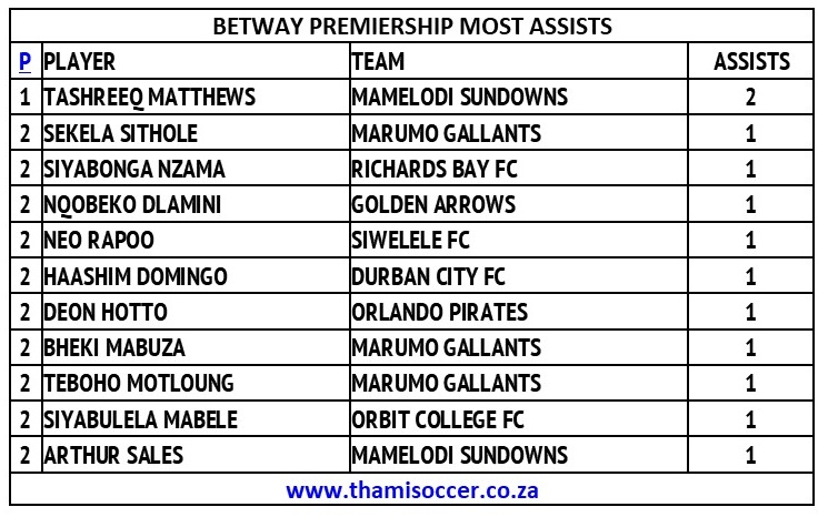 Betway Premiership Most Assists 12 August 2025 Posted on 2025-08-122025-08-13 By Thami Mshengu No Comments on Betway Premiership Most Assists 12 August 2025 (Visited 97 times, 1 visits today)Share this:TwitterWhatsAppPrintTumblrLinkedInFacebookTelegramRedditPocket Related Betway Premiership Tags:Tashreeq Matthews