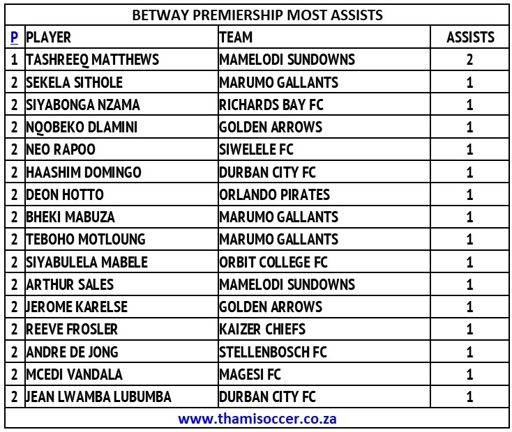 Betway Premiership Most Assists 13 August 2025 Posted on 2025-08-132025-08-14 By Thami Mshengu No Comments on Betway Premiership Most Assists 13 August 2025 (Visited 21 times, 1 visits today)Share this:TwitterWhatsAppPrintTumblrLinkedInFacebookTelegramRedditPocket Related Betway Premiership Tags:Tashreeq Matthews