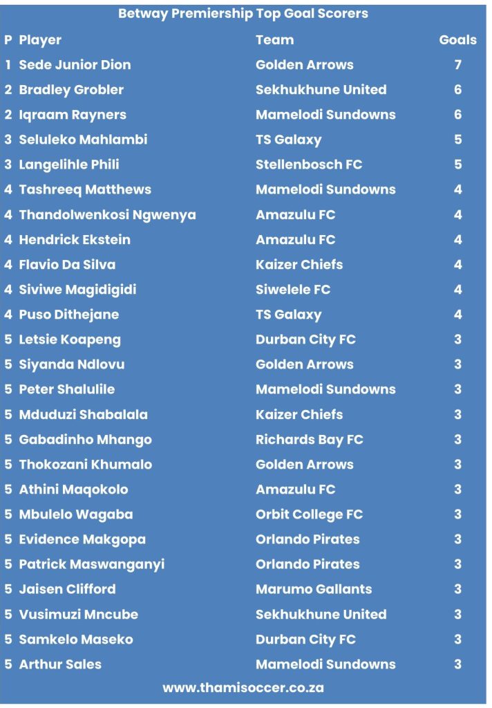 Betway Premiership Top Goal Scorers 19 January 2026 Posted on 2026-01-192026-01-20 By Thami Mshengu No Comments on Betway Premiership Top Goal Scorers 19 January 2026 (Visited 18 times, 1 visits today)Share this:TwitterWhatsAppPrintTumblrLinkedInFacebookTelegramRedditPocket Related Betway Premiership Tags:Sede Junior Dion