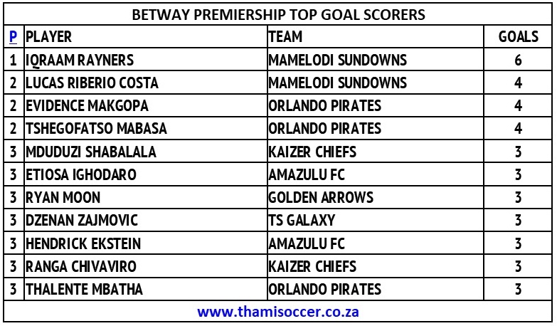 Betway Premiership Top Goal Scorers 24 December 2024 Posted on 2024-12-242024-12-25 By Thami Mshengu 1 Comment on Betway Premiership Top Goal Scorers 24 December 2024 (Visited 214 times, 1 visits today)Share this:TwitterWhatsAppPrintTumblrLinkedInFacebookTelegramRedditPocket Related Betway Premiership Tags:Iqraam Rayners