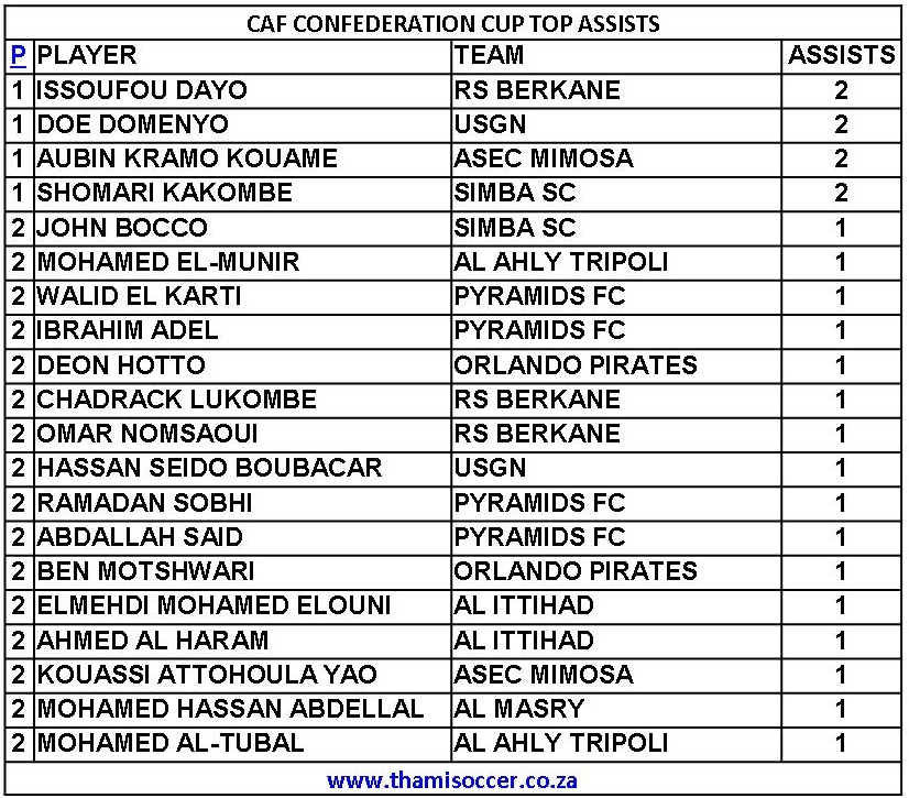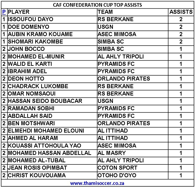 CAF Confederation Cup Top Assists 23 February 2022