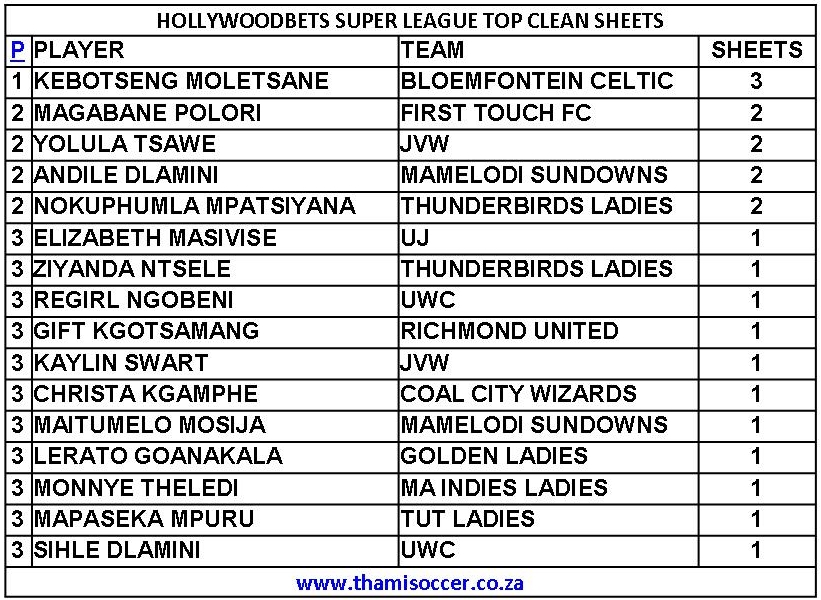 Hollywoodbets Super League Top Clean Sheets 11 May 2022 Posted on 2022-05-162022-05-25 By Thami Mshengu No Comments on Hollywoodbets Super League Top Clean Sheets 11 May 2022 Hollywoodbets Super League, Uncategorized