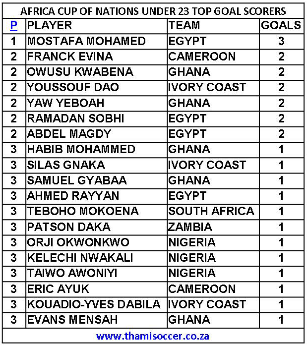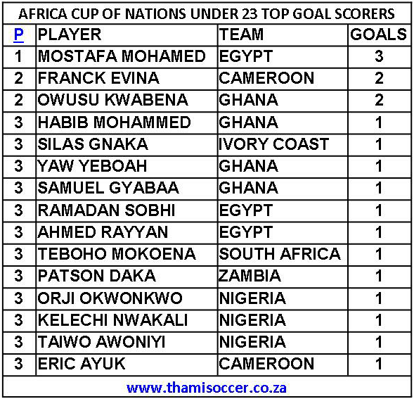 Egypt are the 2019 Total Africa Cup of Nations under 23 champions after defeating Ivory Coast by 2-1 at Cairo International Stadium Friday, 22 November 2019 South Africa 2-2 Ghana, Cairo International Stadium Habib Mohammed [OG] opened the scoring for South Africa. Evans Mensah equalized for Ghana. South Africa took lead through Kamohelo Mahlatsi. Samuel…