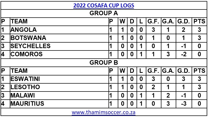 COSAFA Cup Logs 6 July 2022 Posted on 2022-07-072022-07-07 By Thami Mshengu No Comments on COSAFA Cup Logs 6 July 2022 (Visited 104 times, 1 visits today)Share this:TwitterWhatsAppPrintTumblrLinkedInFacebookTelegramRedditPocket Related COSAFA Cup Tags:Eswatini