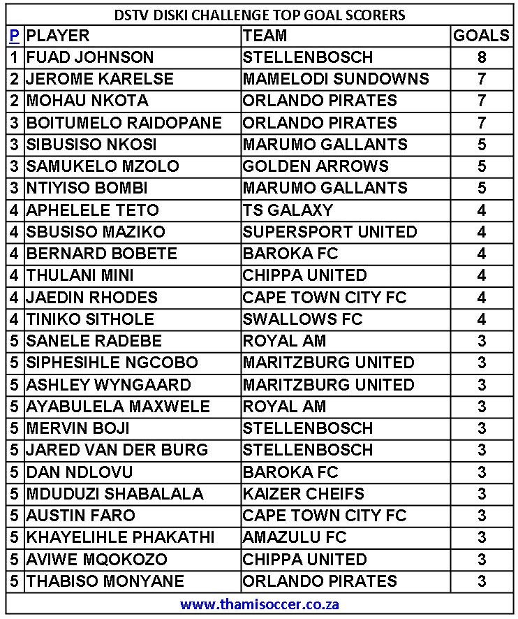 DStv Diski Challenge Top Goal Scorers 13 November 2021 Posted on 2021-11-142021-11-19 By Thami Mshengu 1 Comment on DStv Diski Challenge Top Goal Scorers 13 November 2021 (Visited 110 times, 1 visits today)Share this:TwitterWhatsAppPrintTumblrLinkedInFacebookTelegramRedditPocket Related DStv Diski Challenge Tags:Fuad Johnson