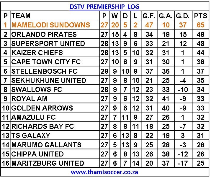 DStv Premiership Log 2 May 2023 Posted on 2023-05-022023-05-03 By Thami Mshengu No Comments on DStv Premiership Log 2 May 2023 (Visited 63 times, 1 visits today)Share this:TwitterWhatsAppPrintTumblrLinkedInFacebookTelegramRedditPocket Related Betway Premiership Tags:Mamelodi Sundowns