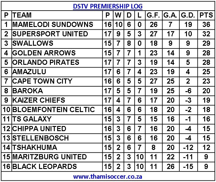 DStv Premiership Log 20 February 2021 Posted on 2021-02-202021-02-20 By Thami Mshengu No Comments on DStv Premiership Log 20 February 2021 (Visited 29 times, 4 visits today)Share this:TwitterWhatsAppPrintTumblrLinkedInFacebookTelegramRedditPocket Related Betway Premiership Tags:Mamelodi Sundowns