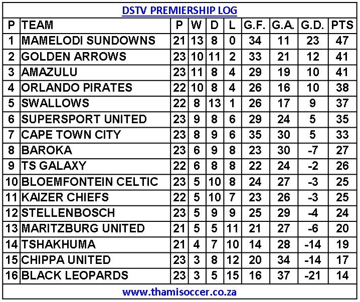 DStv Premiership Log 21 April 2021 Posted on 2021-04-212021-05-02 By Thami Mshengu No Comments on DStv Premiership Log 21 April 2021 (Visited 106 times, 1 visits today)Share this:TwitterWhatsAppPrintTumblrLinkedInFacebookTelegramRedditPocket Related Betway Premiership Tags:Mamelodi Sundowns