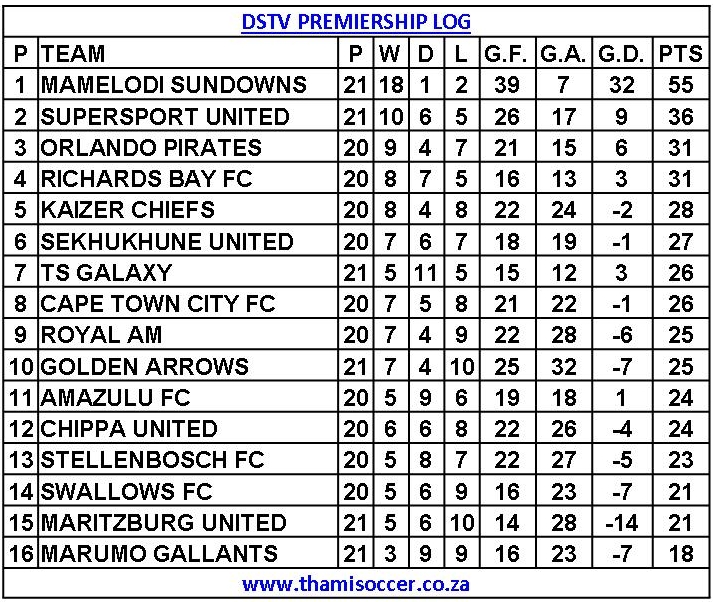 DStv Premiership Log 24 February 2023 Posted on 2023-02-242023-02-24 By Thami Mshengu No Comments on DStv Premiership Log 24 February 2023 (Visited 338 times, 1 visits today)Share this:TwitterWhatsAppPrintTumblrLinkedInFacebookTelegramRedditPocket Related Betway Premiership Tags:Mamelodi Sundowns