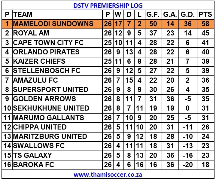DStv Premiership Log 27 April 2022 Posted on 2022-04-272022-04-27 By Thami Mshengu No Comments on DStv Premiership Log 27 April 2022 (Visited 233 times, 1 visits today)Share this:TwitterWhatsAppPrintTumblrLinkedInFacebookTelegramRedditPocket Related Betway Premiership Tags:Mamelodi Sundowns