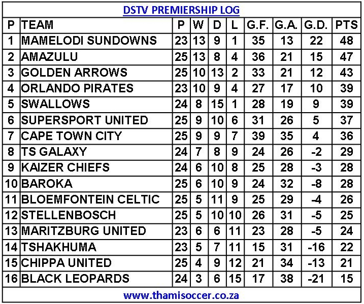 DStv Premiership Log 28 April 2021 Posted on 2021-04-282021-04-29 By Thami Mshengu No Comments on DStv Premiership Log 28 April 2021 (Visited 49 times, 1 visits today)Share this:TwitterWhatsAppPrintTumblrLinkedInFacebookTelegramRedditPocket Related Betway Premiership Tags:Mamelodi Sundowns