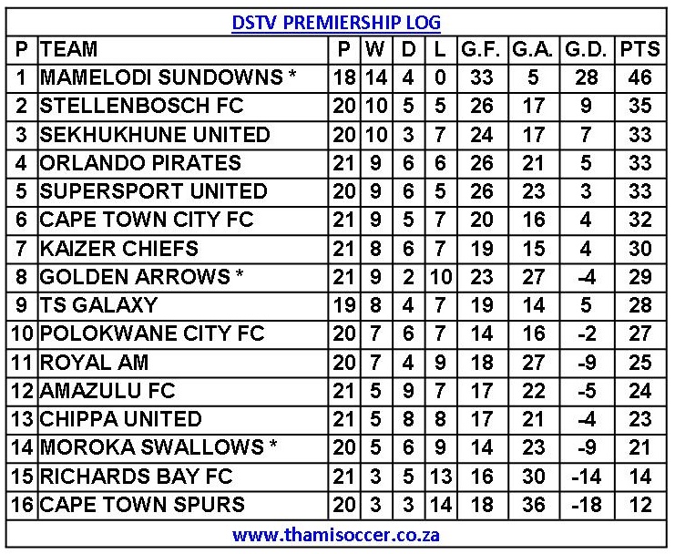 DStv Premiership Log 30 March 2024 Posted on 2024-03-302024-03-31 By Thami Mshengu No Comments on DStv Premiership Log 30 March 2024 (Visited 205 times, 1 visits today)Share this:TwitterWhatsAppPrintTumblrLinkedInFacebookTelegramRedditPocket Related Betway Premiership Tags:Mamelodi Sundowns