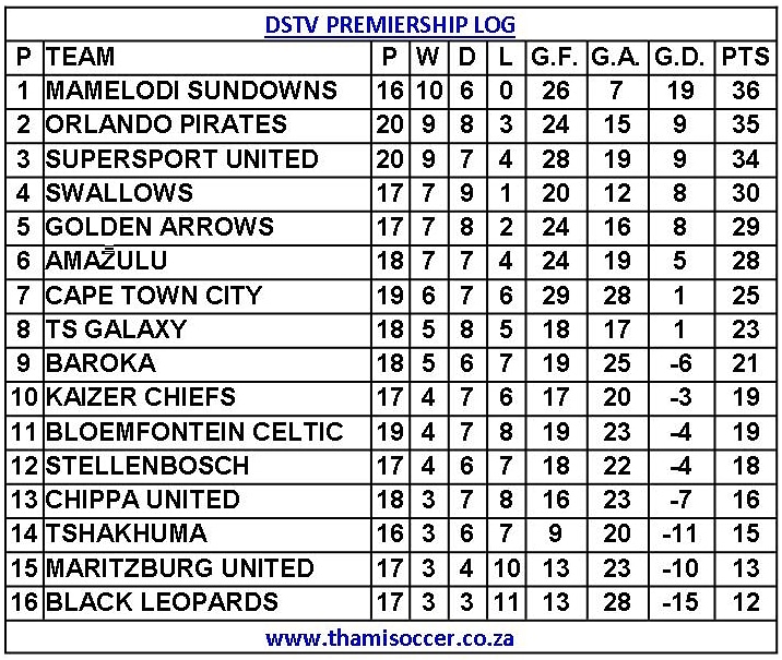 DStv Premiership Log 6 March 2021 Posted on 2021-03-072021-03-07 By Thami Mshengu No Comments on DStv Premiership Log 6 March 2021 (Visited 14 times, 1 visits today)Share this:TwitterWhatsAppPrintTumblrLinkedInFacebookTelegramRedditPocket Related Betway Premiership Tags:Mamelodi Sundowns