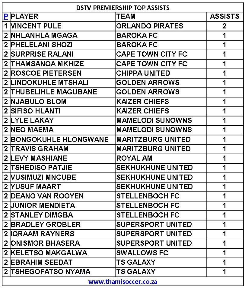 DStv Premiership Top Assists 12 September 2021 Posted on 2021-09-152021-09-15 By Thami Mshengu No Comments on DStv Premiership Top Assists 12 September 2021 (Visited 78 times, 1 visits today)Share this:TwitterWhatsAppPrintTumblrLinkedInFacebookTelegramRedditPocket Related Betway Premiership Tags:Vincent Pule