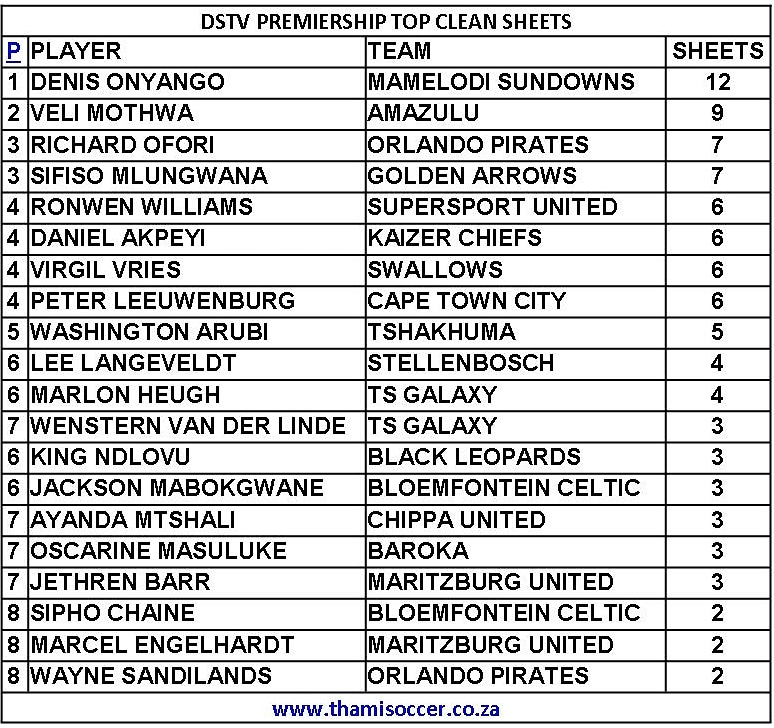 DStv Premiership Top Clean Sheets 24 April 2021 Posted on 2021-04-252021-04-25 By Thami Mshengu No Comments on DStv Premiership Top Clean Sheets 24 April 2021 (Visited 23 times, 1 visits today)Share this:TwitterWhatsAppPrintTumblrLinkedInFacebookTelegramRedditPocket Related Betway Premiership Tags:Denis Onyango