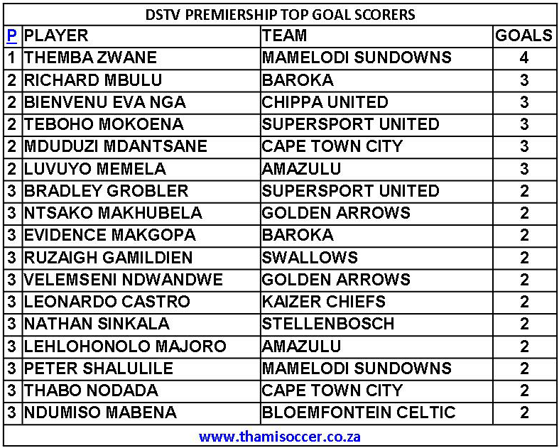 DStv Premiership Top Goal Scorers 25 November 2020 Posted on 2020-11-262020-11-26 By Thami Mshengu No Comments on DStv Premiership Top Goal Scorers 25 November 2020 (Visited 51 times, 1 visits today)Share this:TwitterWhatsAppPrintTumblrLinkedInFacebookTelegramRedditPocket Related Betway Premiership Tags:Themba Zwane