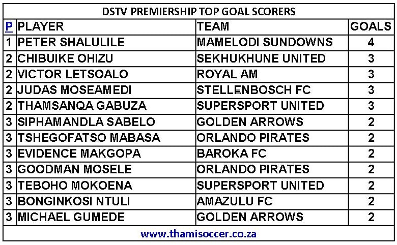 DStv Premiership Top Goal Scorers 25 September 2021 Posted on 2021-09-262021-09-26 By Thami Mshengu 1 Comment on DStv Premiership Top Goal Scorers 25 September 2021 (Visited 44 times, 1 visits today)Share this:TwitterWhatsAppPrintTumblrLinkedInFacebookTelegramRedditPocket Related Betway Premiership Tags:Peter Shalulile