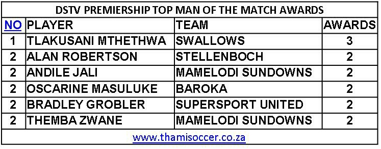 DStv Premiership Top Man Of The Match Awards 20 December 2020 Posted on 2020-12-212020-12-21 By Thami Mshengu No Comments on DStv Premiership Top Man Of The Match Awards 20 December 2020 (Visited 52 times, 1 visits today)Share this:TwitterWhatsAppPrintTumblrLinkedInFacebookTelegramRedditPocket Related Betway Premiership Tags:Tlakusani Mthethwa