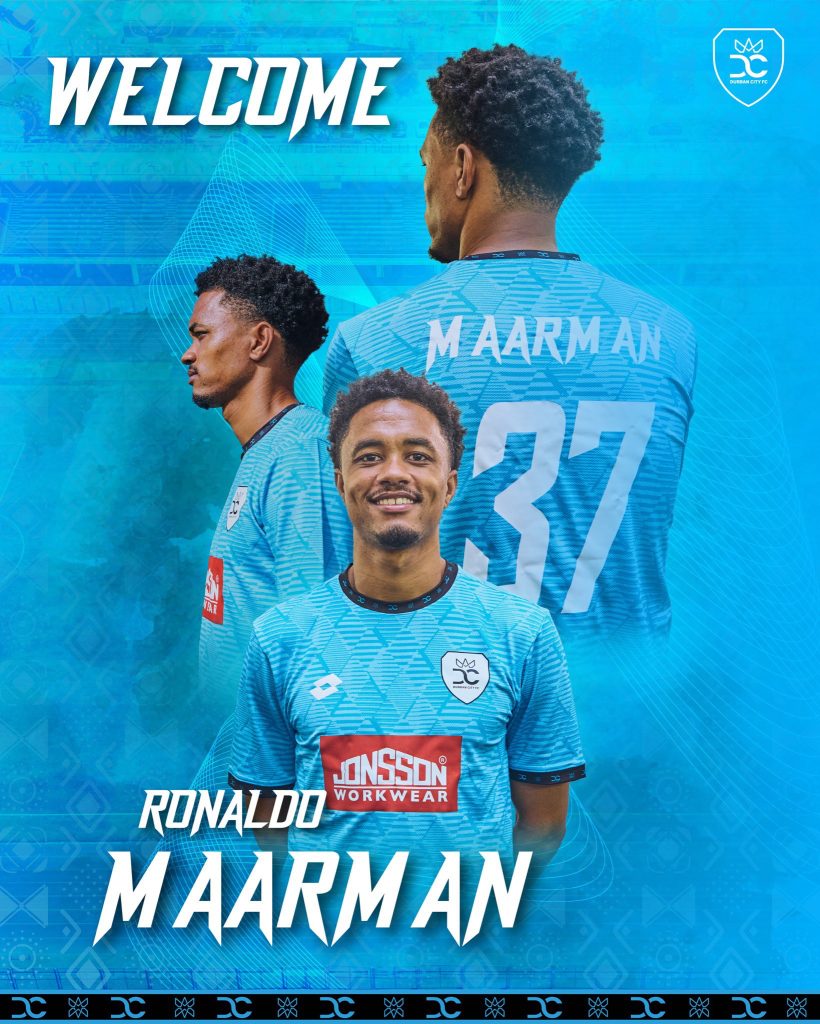 Durban City FC signed Ronaldo Maarman from Sekhukhune United Posted on 2026-01-212026-01-21 By Thami Mshengu No Comments on Durban City FC signed Ronaldo Maarman from Sekhukhune United Durban City FC signed Ronaldo Maarman from Sekhukhune United on a loan deal until the end of 2025/26 season. (Visited 25 times, 1 visits today)Share this:TwitterWhatsAppPrintTumblrLinkedInFacebookTelegramRedditPocket Related Betway Premiership Tags:Ronaldo Maarman