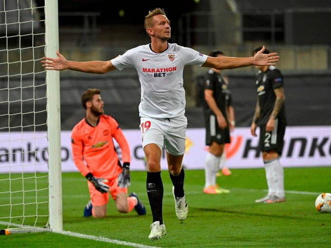 Luuk de Jong netted a winner for Sevilla against Manchester United at RheinEnergieStadion.