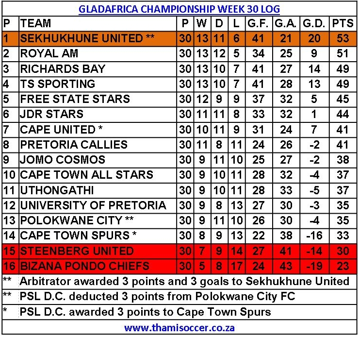 GladAfrica Championship Log 12 June 2021 Posted on 2021-06-122021-06-12 By Thami Mshengu 1 Comment on GladAfrica Championship Log 12 June 2021 (Visited 160 times, 1 visits today)Share this:TwitterWhatsAppPrintTumblrLinkedInFacebookTelegramRedditPocket Related Motsepe Foundation Championship Tags:Sekhukhune United