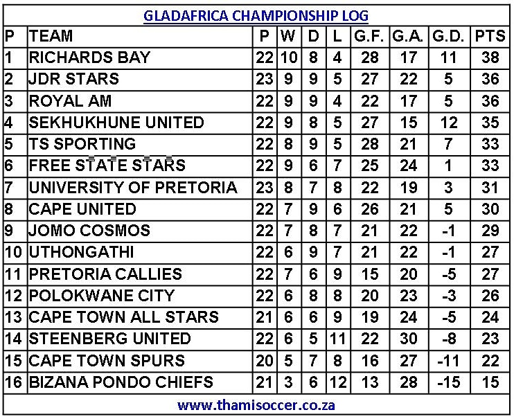GladAfrica Championship Log 13 April 2021 Posted on 2021-04-132021-04-13 By Thami Mshengu No Comments on GladAfrica Championship Log 13 April 2021 (Visited 65 times, 1 visits today)Share this:TwitterWhatsAppPrintTumblrLinkedInFacebookTelegramRedditPocket Related Motsepe Foundation Championship Tags:Richards Bay FC