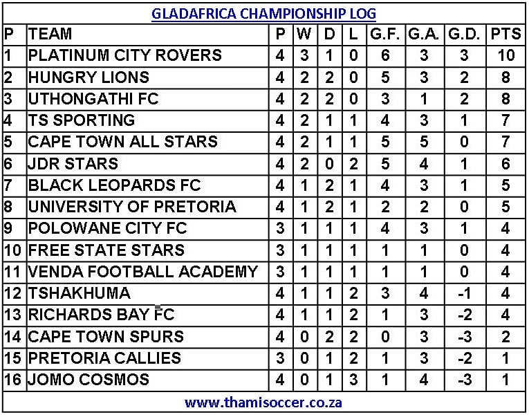 GladAfrica Championship Log 18 September 2021 Posted on 2021-09-182021-09-18 By Thami Mshengu No Comments on GladAfrica Championship Log 18 September 2021 (Visited 25 times, 1 visits today)Share this:TwitterWhatsAppPrintTumblrLinkedInFacebookTelegramRedditPocket Related Motsepe Foundation Championship Tags:Platinum City Rovers