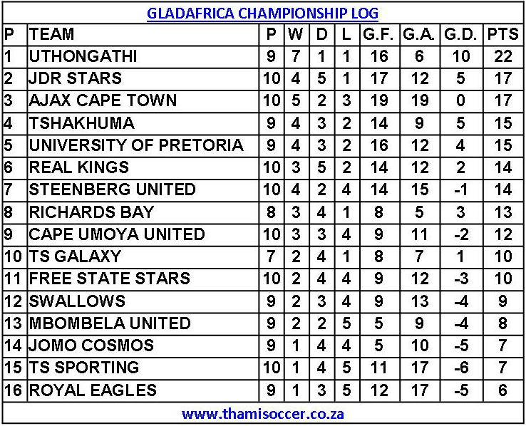 GladAfrica Championship Log 2 November 2019 Posted on 2019-11-02 By Thami Mshengu No Comments on GladAfrica Championship Log 2 November 2019 (Visited 18 times, 1 visits today)Share this:TwitterWhatsAppPrintTumblrLinkedInFacebookTelegramRedditPocket Related Motsepe Foundation Championship