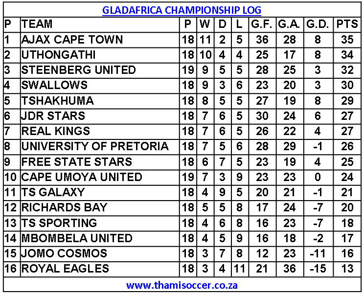 GladAfrica Championship Log 24 January 2020 Posted on 2020-01-24 By Thami Mshengu No Comments on GladAfrica Championship Log 24 January 2020 (Visited 14 times, 1 visits today)Share this:TwitterWhatsAppPrintTumblrLinkedInFacebookTelegramRedditPocket Related Motsepe Foundation Championship