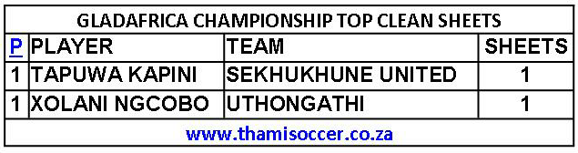 GladAfrica Championship Top Clean Sheets 28 November 2020 Posted on 2020-11-292020-11-29 By Thami Mshengu No Comments on GladAfrica Championship Top Clean Sheets 28 November 2020 (Visited 17 times, 1 visits today)Share this:TwitterWhatsAppPrintTumblrLinkedInFacebookTelegramRedditPocket Related Motsepe Foundation Championship Tags:Tapuwa Kapini, Xolani Ngcobo