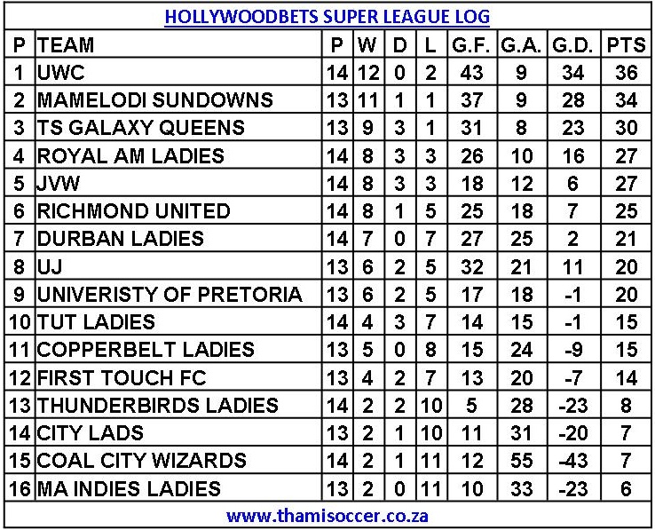 Hollywoodbets Super League Log 20 May 2023 Posted on 2023-05-202023-05-20 By Thami Mshengu No Comments on Hollywoodbets Super League Log 20 May 2023 (Visited 58 times, 1 visits today)Share this:TwitterWhatsAppPrintTumblrLinkedInFacebookTelegramRedditPocket Related Hollywoodbets Super League Tags:University of the Western Cape