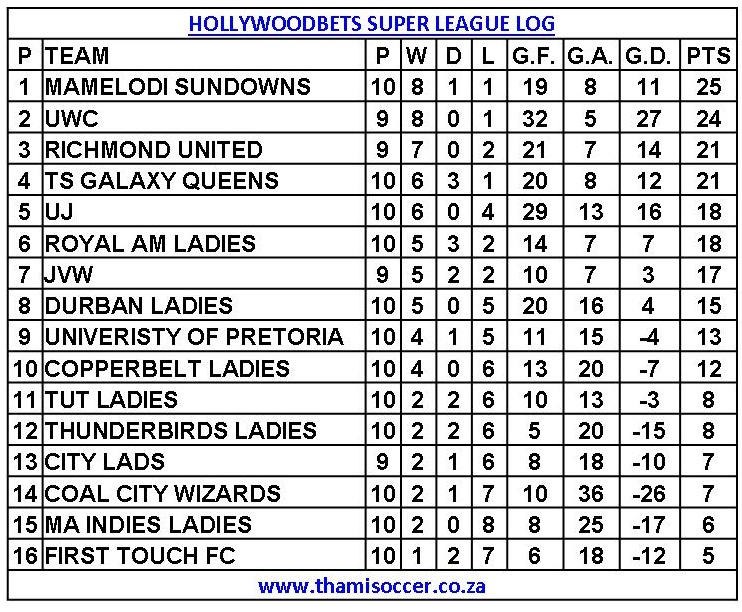 Hollywoodbets Super League Log 23 April 2023 Posted on 2023-04-232023-04-24 By Thami Mshengu No Comments on Hollywoodbets Super League Log 23 April 2023 (Visited 44 times, 1 visits today)Share this:TwitterWhatsAppPrintTumblrLinkedInFacebookTelegramRedditPocket Related Hollywoodbets Super League Tags:Mamelodi Sundowns Ladies