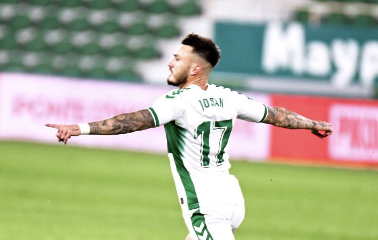 Josan Fernandez scored his first goal this season for Elche against Valencia at Estadio Manuel Martinez Valero.